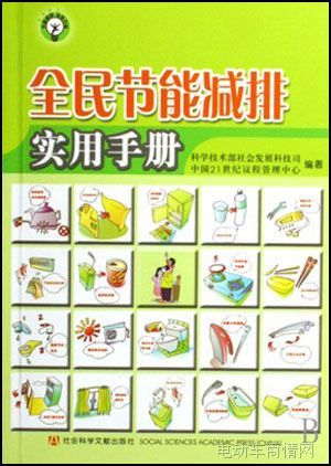 《全民节能减排实用手册》封面 1、电动自行车更节能、更低碳。 按照《全民节能减排实用手册》的说法,小汽车百公里油耗9升,每人分摊的油耗时期1/6,即1.5升,每升油碳排放为2.3千克,碳排放为3.45千克。而电动自行车百公里电耗不到1.2度,按照80%煤炭发电计算,碳排放仅为0.96千克,是公交车相应排放的28%。也许大家对这个概念不是很清晰,电动自行车百公里电耗为1.2度——不足一元,但是只要上了公交车就要投币2元,更不用说往返、中途转车了。
