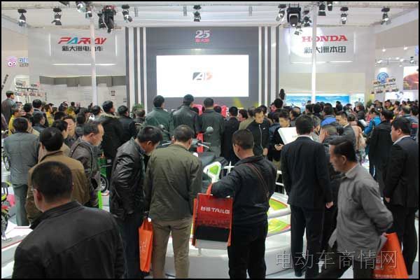 会展期间,各大强势电动车品牌纷纷为参观者上演了一台精彩缤纷的节目,炫目的文艺演出、前卫的概念车、时尚的新款车以及靓丽的模特让人们目不暇接。而新大洲电动车与新大洲本田的联合展位更是人气爆棚,在堪称镇馆之宝的真正具有高科技含量的honda核心车型电动摩托车-EV-neo展台周围人流络绎不绝;在具有独特仿生外观的彩蝶展台前人头攒动;在造型经典、做工精良的酷梦、悦梦、闪电车型展台周围人声鼎沸。参观者为本田的研发实力、为新大洲的造车经验叹服。