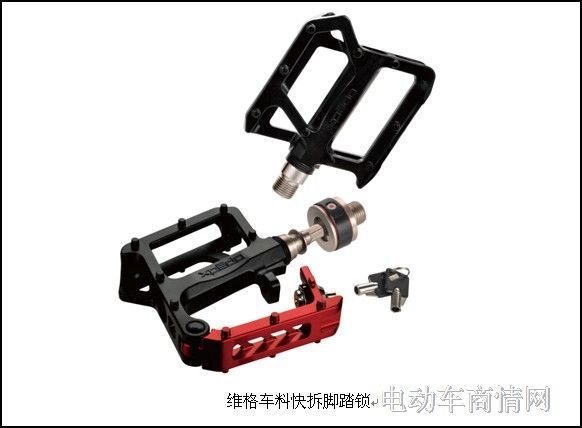 既是踏板、也是车锁——维格车料选用高强度、刚性优的铝合金材料,配合先进技术创造出强度佳的两用踏板。适用于各种不同的消费者,在不增加携带困扰的前提下,维格车料所生产的两用踏板可以从快拆头拆卸后快速锁入轮圈钢丝,踏板即刻成为了车锁,方便适用。这充分体现了自行车零配件逐渐成为集多功能、人性化、创新性于一体的创新科技产品。