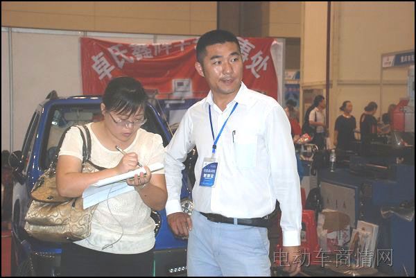 公司相关领导在展会上向参观群众介绍公司太阳能产品
