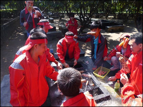 大家都饿了,有条不紊地挑自己喜欢的食物烧烤,虽然不专业,但当拿起自己烧烤的食物吃起来,可津津有味了,都说好吃好吃,您知道为什么吗?大伙都乐在其中。