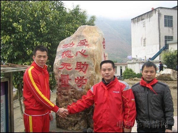 劳义热心公益,在台铃梦想操场石碑前和胡总、陶总合影