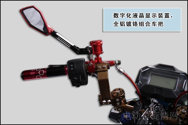 其他卖点:USB手机充电功能,电机不怕水,双组份高分子质感烤漆,车身不生锈,数字化液晶显示装置(液晶仪表),全自动三档变速系统,双遥控单向防盗报警,魔术铝把,侧开鞍座,弹簧搁脚,改装气门嘴,异型尾牌,镀铬转把,铝制踏皮……