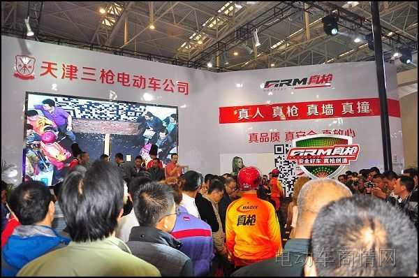 在第14届天津国际电动车展览会上 ,真枪电动车展厅现场举办了“真人真枪真墙真撞”真枪勇士现金挑战赛。为获得巨额奖金,现场观展人员在主持人的煽风点火之下踊跃报名。真人真枪真墙真撞人肉飞车活动极为火爆,站台位拥堵,甚至一度失去控制。不仅如此,活动现场还出现外籍美女三点走秀助阵。