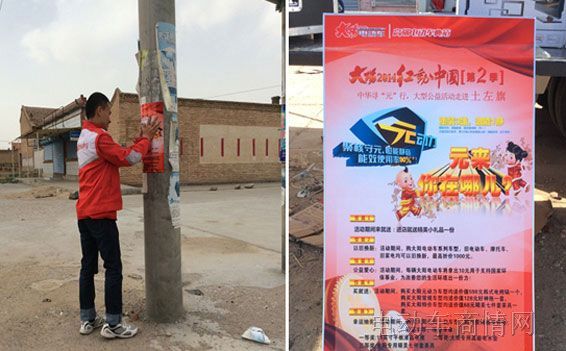 中华寻“元”行,大阳电动车大型公益活动走进土左旗!在活动开始之前,确保让所有需要购车的老百姓享受到这优惠,寻元小组进行了精心的布置并张贴活动优惠告示。大阳电动车吉祥卡通人“喜阳阳”深得男女老少的喜爱,纷纷要求合照。