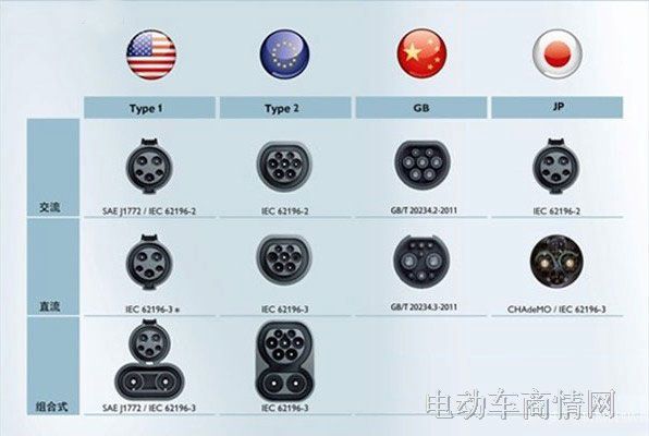 中外电动车充电接口对比
