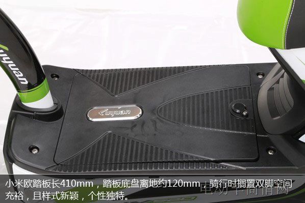 外部质量的评测包括车款的车体框架、艺术工程等部分,通过测试,评测组得到数据,小米欧的外形尺寸为1478*630*987mm,踏板长410mm,其中踏板底盘离地约120mm,作为一款休闲车,小米欧的车体工程完全符合标准。