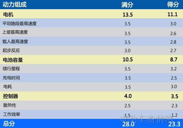 内部质量上,小米欧并没有太大优势,小米欧的动力系统、刹车系统都很平常化(文章后面给出了评测标准),因此,评测组在此项上扣掉1.1分,小米欧内部质量得分3.4分。