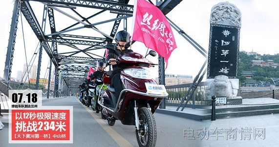 2014年7月18日,绿能车队到达兰州,开启丝绸之路奇迹一的创造:以12秒的极限速度挑战234米的“天下黄河第一桥”中山桥,七大奇迹首战告捷,见证绿能电动车强大的加速能力。
