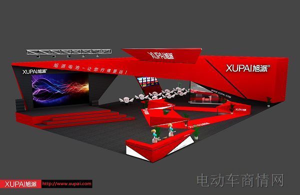一直以来,旭派品牌以红色和黑色作为代表色,红色代表着吉祥、喜气。黑色具有高贵,稳重,科技的意象。旭派展馆主要色调也以红黑为主,白色为辅,三者都属于色调里的经典百搭色,又兼顾了旭派品牌内涵在其中,三者搭配在一起,别有一番滋味。最主要也彰显了旭派电池全球三大电动车电池供应商之一,全球电动车电池领导品牌的行业领军地位。来过旭派展馆的消费者一定能感受到旭派展馆内明亮却有不刺眼的灯光效果,灯光的渲染,在某些方面可以与产品的宣传达到一种默契的配合度,体现出产品的科技感以及旭派电池的品牌实力与号召力。