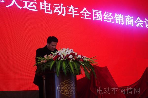 会议首先由大运董事长蔡烈烽先生致欢迎词。蔡董讲到,今年,行业虽然十分不景气,但也开启了全行业转型升级实践年,品牌的树立和销量的上扬都变得愈发严峻,面对这局势,大运电动车逆势而上,坚持稳扎稳打,通过对重点市场的准确定位和把控,相比2013年同期销量增长34%,在行业内取得了傲人的成绩。