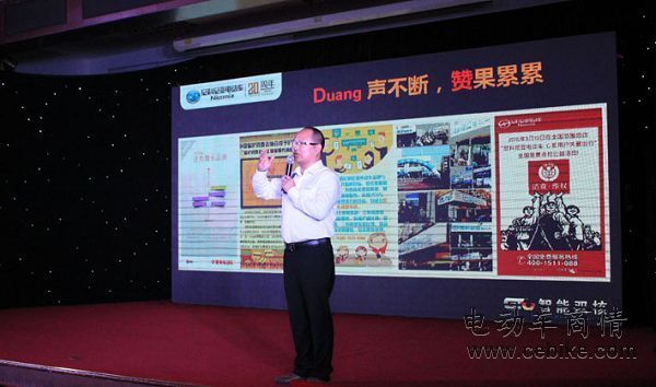 接下来,销售公司总经理秦勇上台发言。秦总就尼科尼亚二十年来企业、品牌、产品、技术、服务及理念等方面进行了详细介绍,得到了现场经销商的热烈反响。随后秦总向经销商朋友们详细解读了尼科尼亚在2015年的市场投放计划以及品牌发展战略,开启了尼科尼亚在2015年竞争中脱颖而出、辉煌璀璨的新征程。