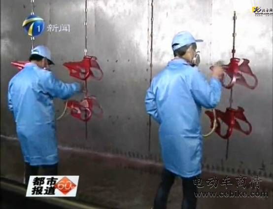 员工对喷涂设备进行清洗,烤漆车间要求绝对无尘,PM2.5在这里不允许存在
