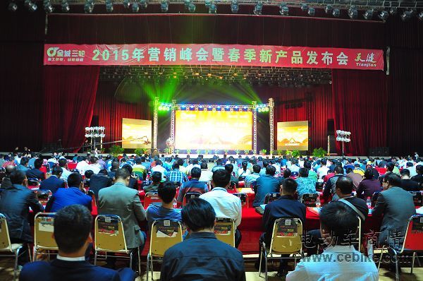 2015年4月26日,金城集团•河南天健车业2015年营销峰会暨春季新产品发布会在河南商丘华驰粤海酒店隆重举行。金城集团副总经理、南京金城机械有限公司董事长田爱军,南京金城机械有限公司总经理吴青松,金城集团计财运营中心总经理史松卫,南京金城机械有限公司副总经理盛先传,帝隆集团副总裁张顺喜,帝隆集团帝隆车业公司总经理尚德荣;河南天健车业有限公司总经理吕勇,河南天健车业有限公司质量总监吴伟,河南天健车业有限公司营销总监吕田,河南天健车业有限公司制造总监尚德文,河南天健车业有限公司技术总监李兆清等领导嘉宾以及来自全国各地的经销商共聚一堂,共谋发展大计。