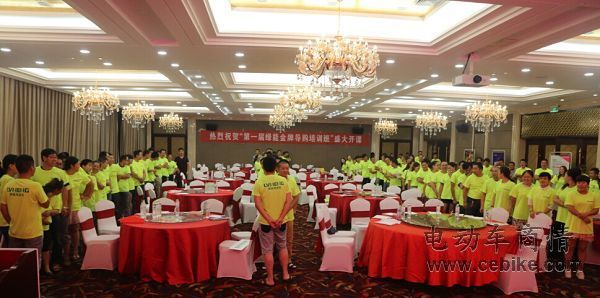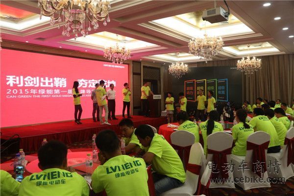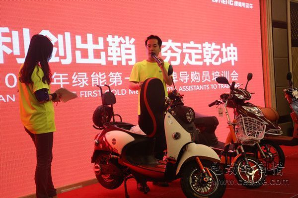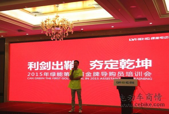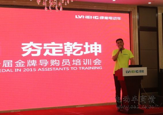 2015年7月14日,江苏绿能电动车科技有限公司在常州奥阳华美达大酒店召开了第一届绿能金牌导购培训会。绿能公司营销总监朱伟群,市场部部长李攀、拓展部部长李辉、产品经理吴茂丽、贵阳分公司金牌导购李华、常州分公司销售经理吴忠明等以及100多位来自全国区域的导购员相聚一堂,共同见证了最激动人心的一刻。