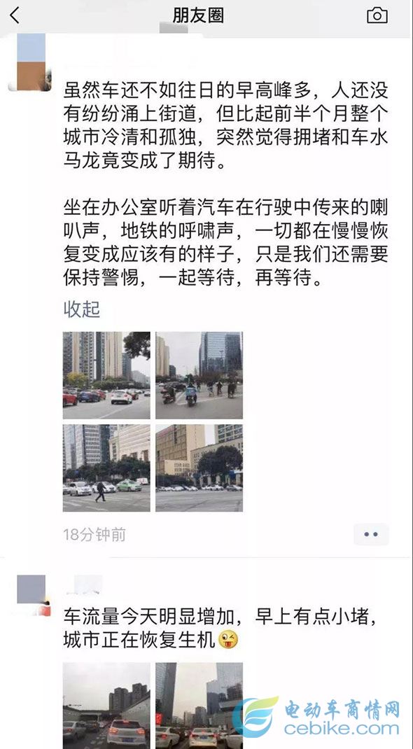 朋友圈也开始出现自己所在城市堵车的消息。不少人感慨:以后再也不抱怨堵车了,因为那才是繁华大道;以后再也不嫌弃人山人海了,因为那才是国泰民安。