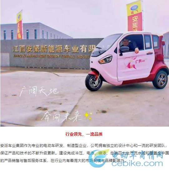 常州市宇锋车业有限公司是国内较大的电动三轮车生产厂家,是一家专业从事研究、开发、制造电动三轮车以及蓄电池和新材料的高新技术企业,公司创建于1995年,厂区占地面积58000多平方米,拥有专业技术人员50余名。设备精良,工艺先进,质量管理严格,检测手段齐全。