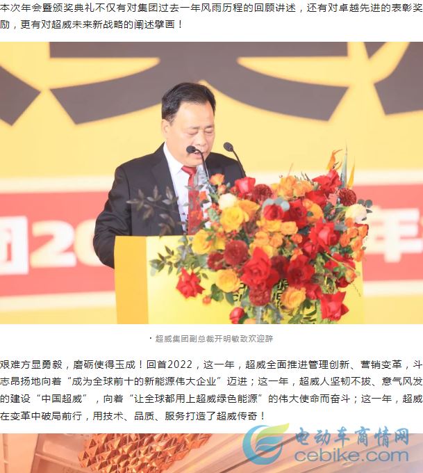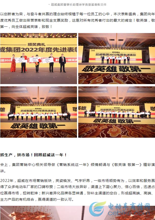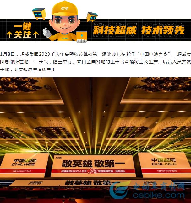 [提要] 1月8日,超威集团2023千人年会暨敬英雄敬第一颁奖典礼在浙江“中国电池之乡”、超威集团总部所在地——长兴,隆重举行。